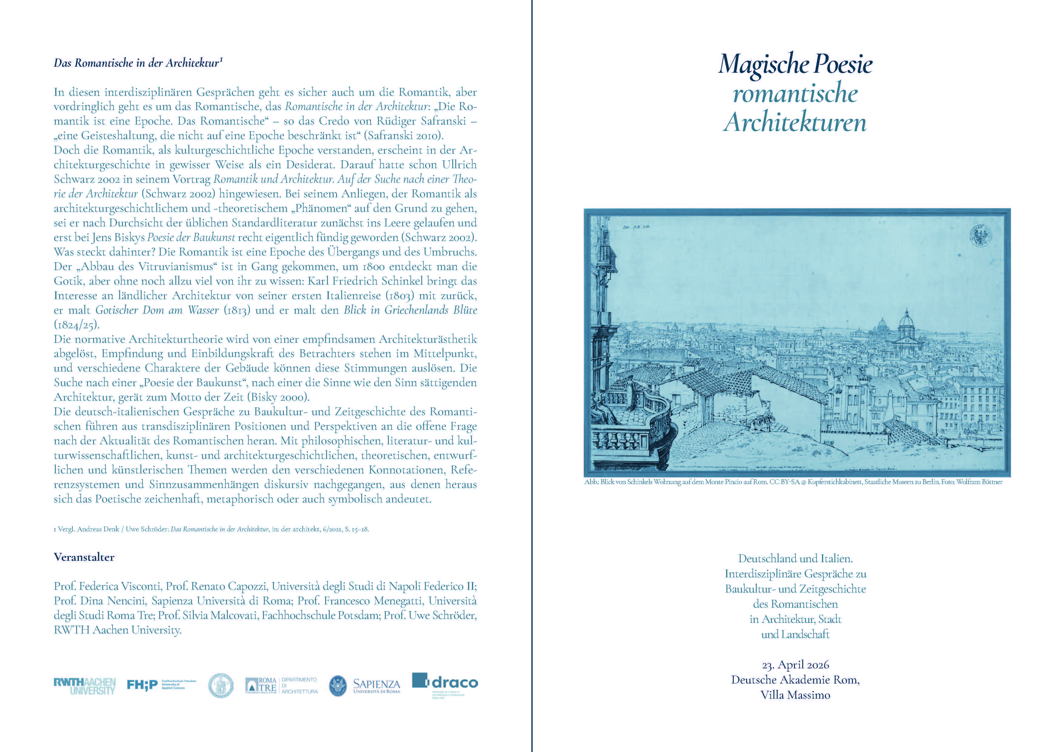 • Uwe Schröder. Architettura Lingua Romana. La Città romanticizzata. 16 Frammenti, Buchvorstellung an der Sapienza in Rom