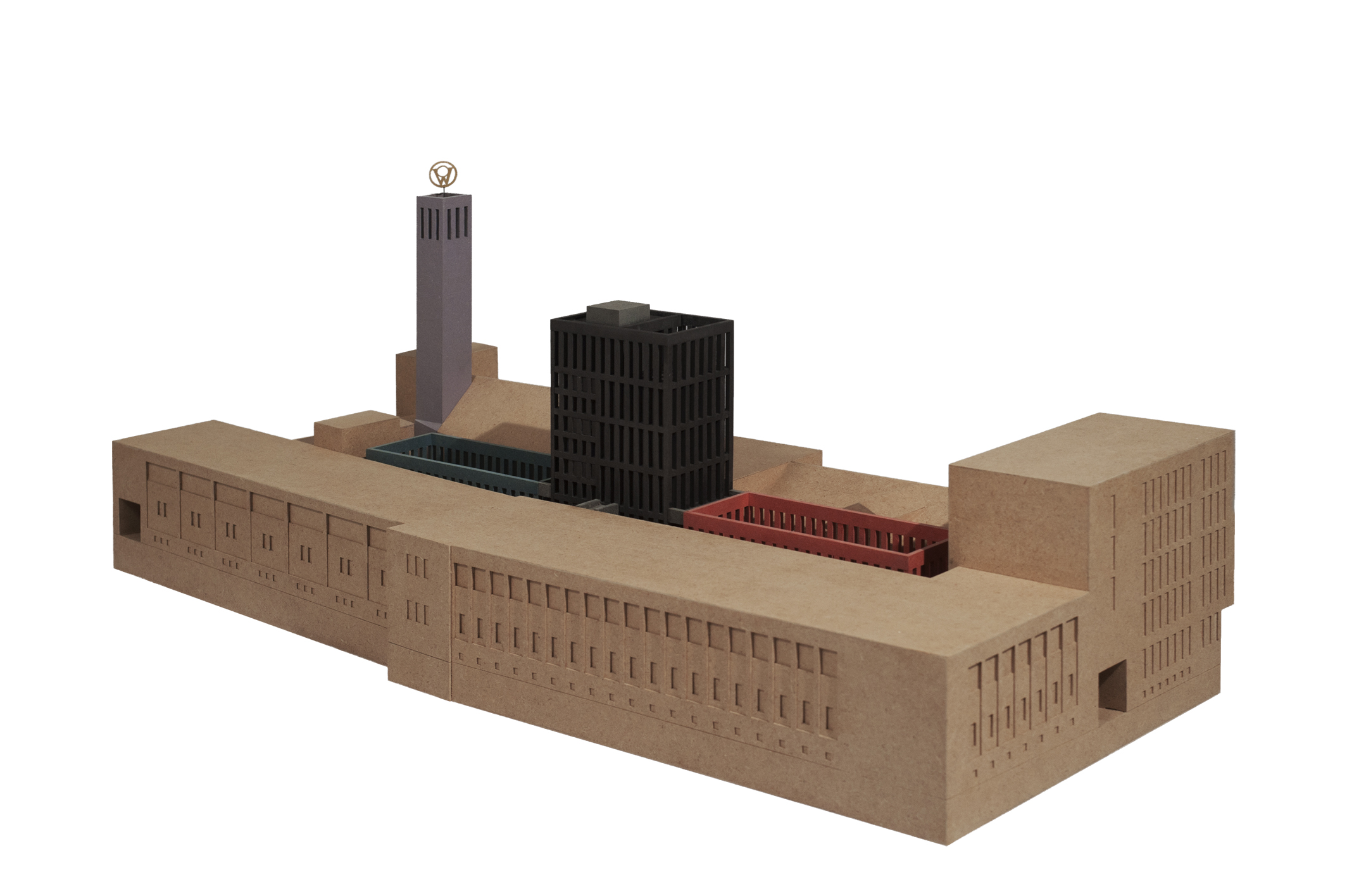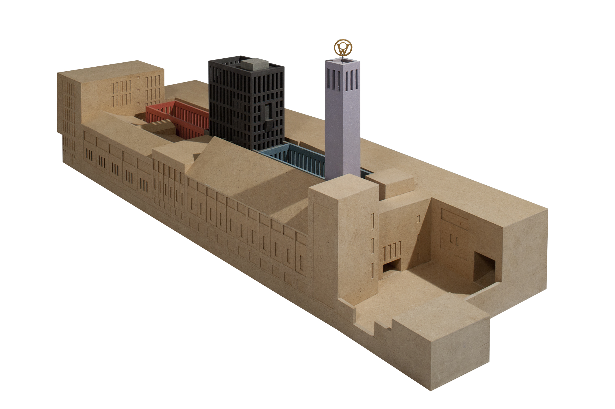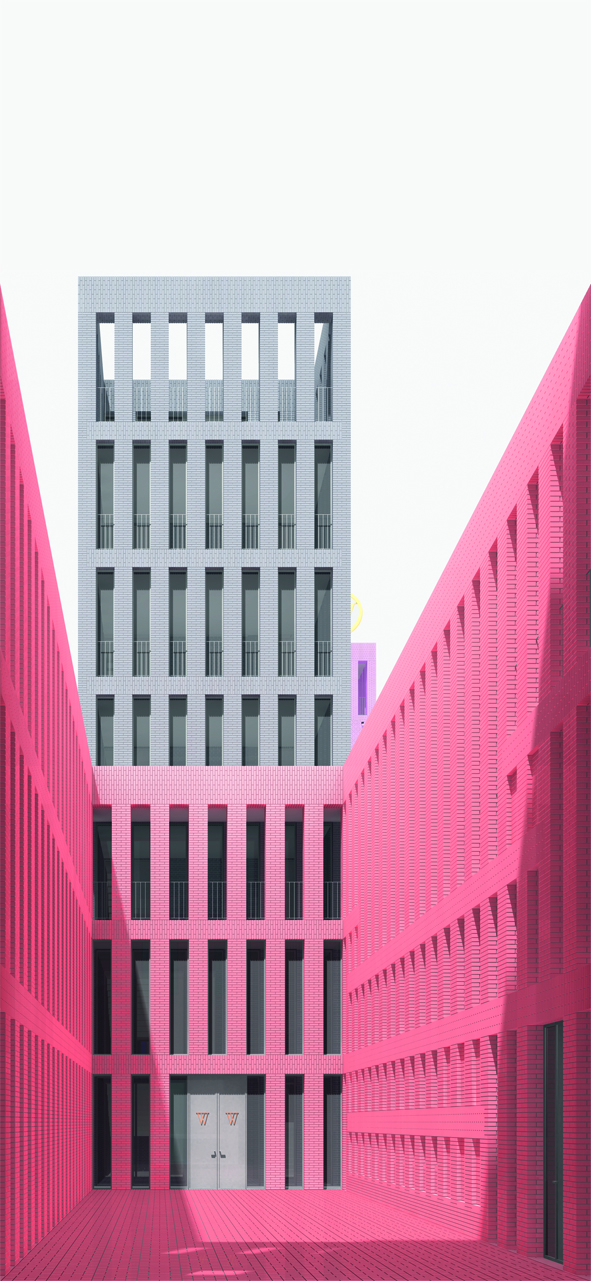 Der Zwischenraum der Wandelhalle vermittelt den Gegensatz von Regelmäßigkeit und Unregelmäßigkeit, von Bestimmtheit und Zufall, von Gestaltung und Eigenwüchsigkeit, von Schönheit und „Hässlichkeit“, von Harmonie und Disharmonie. Der Entwurf setzt auf das dialektische Potenzial dieser Korrelation. Indem der raumgestaltende Ein- und Ausbau insofern den additiven Charakter des bestehenden Ensembles von innen heraus aufhebt, zieht er auch im Äußeren einen harmonisierenden Umbau zur differenziert gegliederten Großform nach sich. Bei der Börse von Hendrik Petrus Berlage geht dieser Affekt weniger aus dem Inneren als vielmehr aus dem Äußeren der umgebenden Stadt hervor. Während der Amsterdamer Bau seine sublime äußere Erscheinungsform mit Rücksicht auf den gewachsenen Ort findet, hebt die innere Kohärenz der Manufaktur folgerichtig auch die äußere Zusammengesetztheit weitgehend auf. Entscheidend ist jedoch, dass in dem einen wie in dem anderen Fall, vom Äußeren her oder aus dem Inneren heraus, die große Form eine vermittelnde Maßstäblichkeit bewahrt. Die entschiedene Wandlung vom Block zum Hof betrifft auch die Stadt. Auch hier mag die Spiegelung der Baugeschichte zur Klärung beitragen: Unverkennbar ist Aldo Rossis Berliner Block in der Schützenstraße ein Baustein der Stadt, der selbst wiederum auf der Verbindung von Struktur und Element aufbaut, d.h. der Block setzt sich aus Häusern zusammen, die überdeutlich in Form, Material und vor allem mit Farbe ihren eigenständigen Charakter behaupten und die jeweilige Adresse an der Straße repräsentieren. Mit der Wandlung zum Hof verlagert der Entwurf die Adresse der Manufaktur von mehreren äußeren zu einer einzigen im Inneren. Betont werden nicht länger die eigenständigen Charaktere der einzelnen Bauabschnitte des gesamten Ensembles, sondern vielmehr die Kohärenz der großen Hofanlage. Zwar bestimmen die bestehenden unterschiedlichen Konstruktionen das Dekorum der äußeren formalen Gestalt der Wände nach wie vor mit, zugleich aber werden sie in einer Union von Material und Farbe vereinheitlicht und zusammengefasst zur großen Form. Und wie in einer Umkehrung von Rossis Block erscheint das Äußere in gedeckten erdgebunden Farben, während die Polychromie erst im Inneren des Hofes gleich einer sich öffnenden Schatztruhe ihren spektakulären Auftritt feiert. Und wie bei jenem die öffentliche Widmung der Räume an den äußeren Rändern des Blockes einen abrupten Wechsel zum privaten erfährt, so führt die Hofanlage mit der großen Raumfolge des Entrees das Äußere ins Innere, vom öffentlichen Raum des vorgelagerten Platzes über halböffentliche in halbprivate und private Räume, über Passagen, Schwellen und Höfe in die aufnehmende mittige Halle der Manufaktur. Die Konzeption der Manufaktur als Hof tradiert die Geschichte der Goldstadt Pforzheim. Zum einen gilt das in einem typologischen Sinn, in dem die große Form an den Typus der Fabriken in der Stadt erinnert, beispielshalber an die ehemalige Schmuckfabrik Kollmar & Jourdan AG (1900-1910, 1922), in der heute das technische Museum der Schmuck- und Uhrenindustrie untergebracht ist. Zum anderen gilt das für die Übertragung der Konstruktion in die bisweilen aufwändige Dekoration äußerer Fassaden und auch für das verwendete Material selbst, für den Ziegel, der den Charakter „industrieller Architektur“ konnotiert.