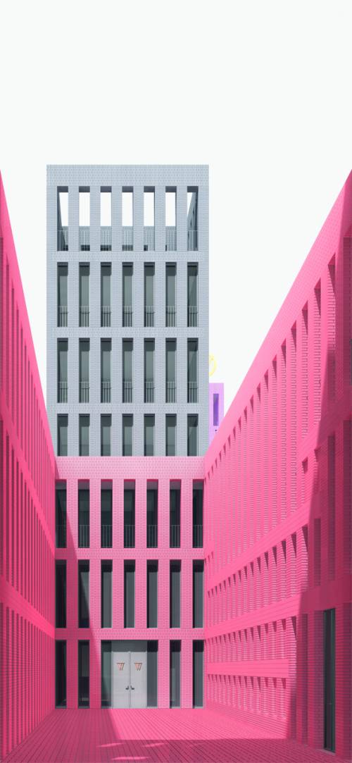 Während die neugestaltete Manufaktur mit ihrer gebundene äußeren Farbigkeit auf die umgebene Stadt Rücksicht nimmt, stellt sich die innere Räumlichkeit der Hofanlage in ihrer Polychromie mit einer leuchtenden, schimmernden und glänzenden Farbigkeit vor, die hier in einer heiteren und dort mit festlicher Atmosphäre zum Ausdruck kommt.